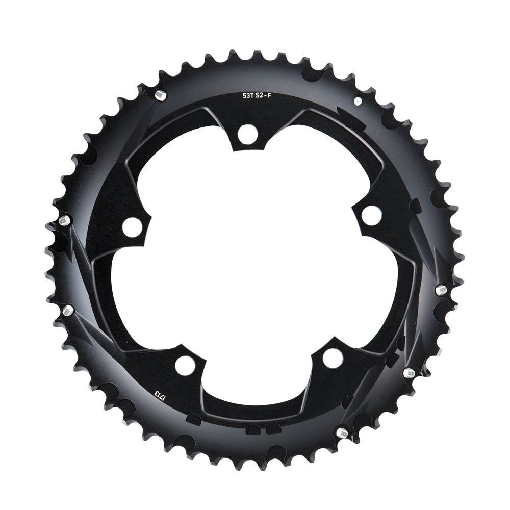 Replace worn out chainrings or change out gearing with SRAM's RED X-Glide Chainrings. These solid rings are crafted from aluminum using SRAM's X-Glide tooth profiles for quick, responsive shifting. If you have a SRAM RED 10-speed Exogram* standard crank, these are the rings for you. RED Exogram cranks have a hidden 5th bolt behind the crank arm